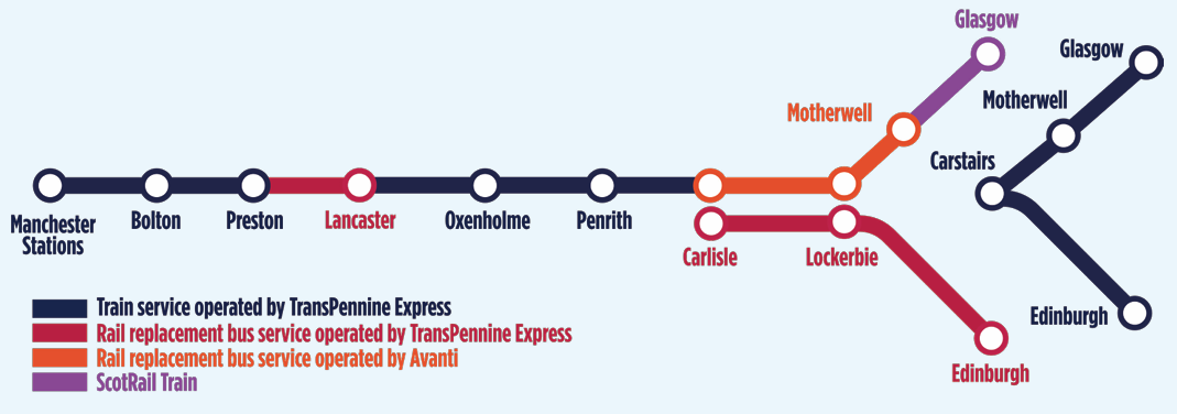 As before, buses will be filling in the gaps. Here’s a look at how the bus replacements will work, as it changes slightly day-to-day. A replacement bus will run between Preston and Lancaster on Saturday 11th, and from Monday 13th to Saturday the 18th of April. However, on Sunday 12th, the bus will go all the way from Preston to Carlisle. Then on Sunday 19th, it will run between Preston and Oxenholme. It’s a bit complicated, which is why checking the journey planner for the specific day of travel is so important. Throughout this whole period, buses will also connect Carlisle with Edinburgh and Motherwell. For any journey planned between Friday the 17th and the end of the weekend, it is essential to look up the route in advance. This period in mid-April 2026 is when some of the most complex work is being done, affecting many different journeys.